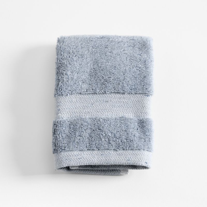 The blue tones and flecked detail of our luxurious washcloth come from tiny bits of contrasting color twisted into the Turkish cotton fiber as it's spun into yarn. At 550 grams, the towel has a lighter hand than our other Turkish towels with the same exceptional absorbency and durability. An intricate herringbone dobby weave border on either end adds a bit of textured detail. Washing will only make this exceptional textile more absorbent and soft.