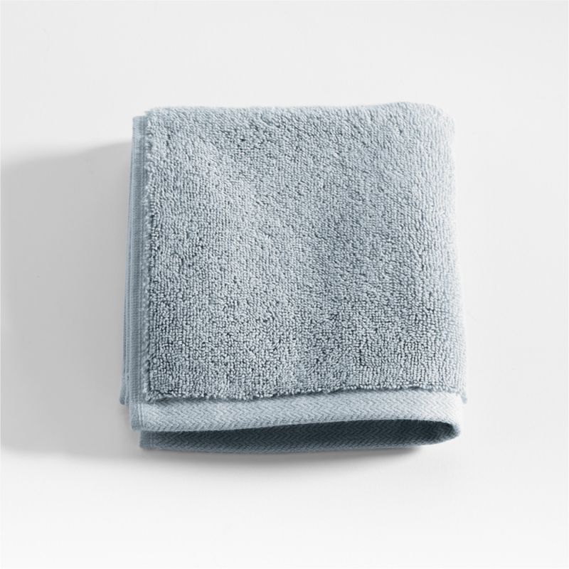 Luxurious Turkish organic cotton yarn weaves extremely soft, plush and dense towels. Made of double-ply cotton threads to ensure strength and durability, our Turkish washcloth in misty blue is woven with a looped rather than tight construction to dry quickly. An intricate herringbone dobby weave border on either end adds a bit of elegant detail. Washing will only make this exceptional textile more absorbent and soft. For a sumptuously outfitted spa-like bathroom, pair the washcloth with our other Turkish towels in the same serene hue.