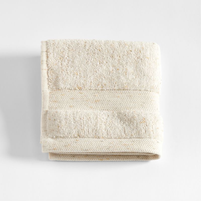 Indulge in the plush softness of our organic Turkish cotton washcloth. The beige tones and flecked detail come from tiny bits of contrasting color that are twisted into the cotton fiber as it's spun into yarn. At 550 grams, the washcloth has a lighter hand than our other Turkish towels with all of the exceptional absorbency and durability. Dobby weave bands at both ends add a bit of textural detail. Washing will only make this exceptional textile more absorbent and soft. For a full-service, well-coordinated bathroom, team the beige-flecked washcloth with the matching bath sheet, bath towel, hand towel, bath mat and robe.