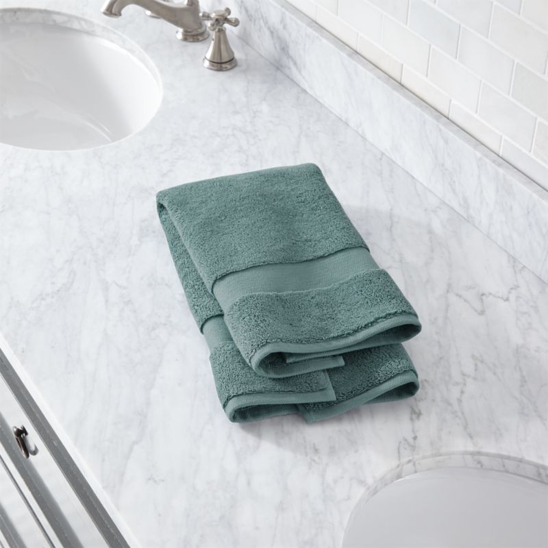 Luxurious Turkish organic cotton yarn weaves extremely soft, plush and dense towels. Made of double-ply cotton threads to ensure strength and durability, our Turkish hand towel in ocean blue is woven with a looped rather than tight construction to dry quickly. An intricate herringbone dobby weave border on either end adds a bit of elegant detail. Washing will only make this exceptional textile more absorbent and soft. Coordinates with our other Turkish towels.