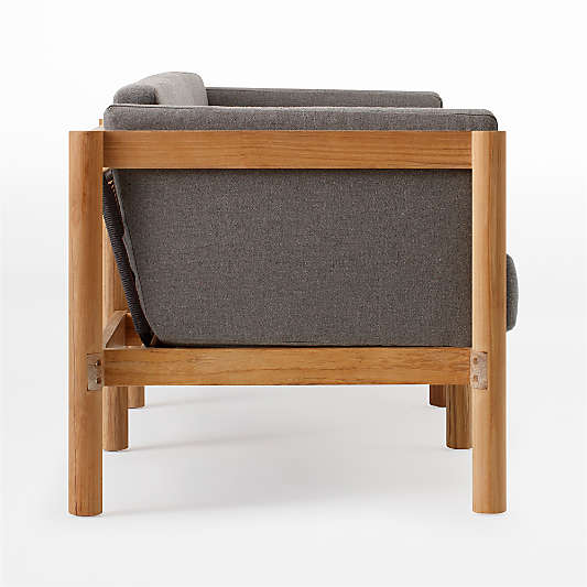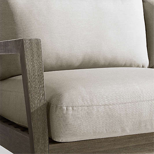 Once you know the outdoor sofa size you're looking for, find a design that reflects your personal style. For example, the material of your patio furniture couch frame impacts how it feels in your space. Wood-framed or wicker patio sofas have a warm and textured look, giving the deck a classic appeal. Metal framed outdoor sofas, on the other hand, offer a crisp, modern image. Can't choose? Mixed material outdoor furniture combines the best of both worlds. When it comes to outdoor sofas, durability is just as important as style. Choose durable patio couches with outdoor sofa cushions from Choose durable patio couches with outdoor sofa cushions from Sunbrella that add comfort and hold up to the elements. Bright blues and whites make the space pop. Or, take a classic approach with a grey or brown sofa. Whichever look you choose, finish off your space with an outdoor rug to tie together your look.