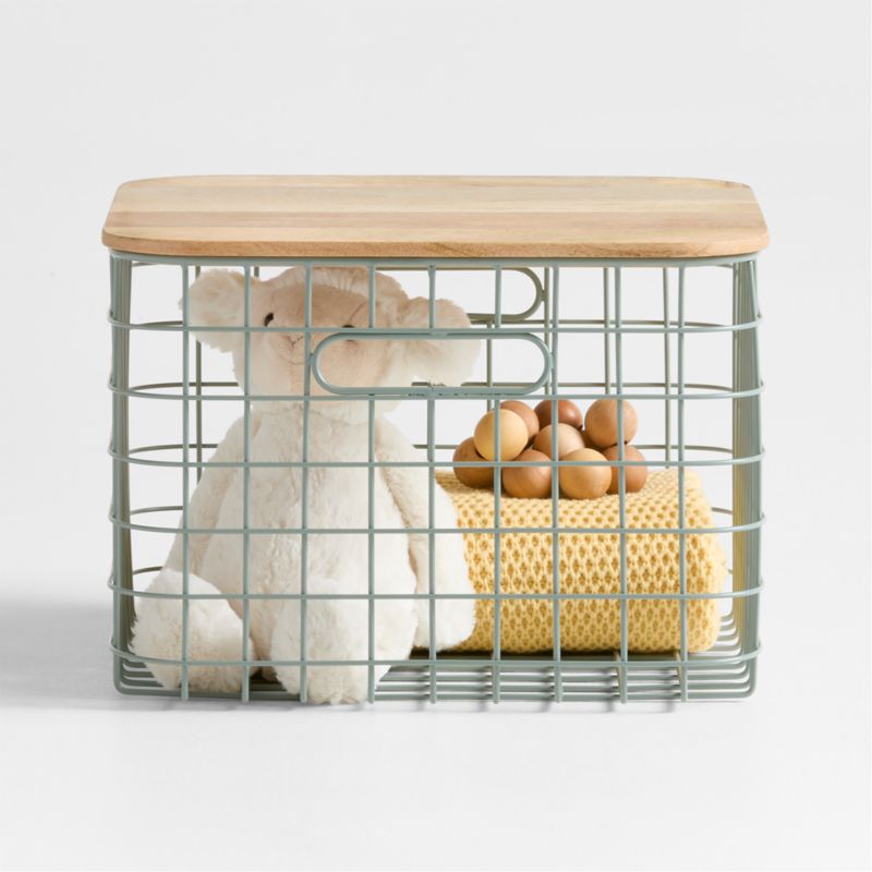 • View Outline Sage Medium Wire Metal Floor Storage Bin with Wood Lid - image 6 of 10