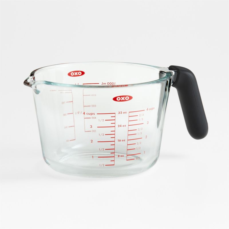 This four-cup measuring cup stands up to a variety of kitchen tasks. Made of thermal shock-resistant glass, it can be used to heat, reheat and melt cold ingredients (even straight from the fridge or freezer). Or scoop hot pasta water from a pan to save for emulsifying a sauce—the spout makes it easy to pour in precisely what you need. The silicone handle provides a comfortable nonslip grip even when wet, and the measuring cup cleans up quickly in the dishwasher.
