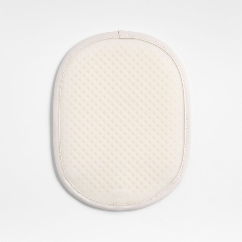 Protecting from heat, stains, flames and steam, this silicone pot holder has a textured, nonslip grip and a supersoft interior for added insulation and comfort. The creamy oat-inspired hue has a fresh look, and the pot holder cleans up easily in the washing machine.
