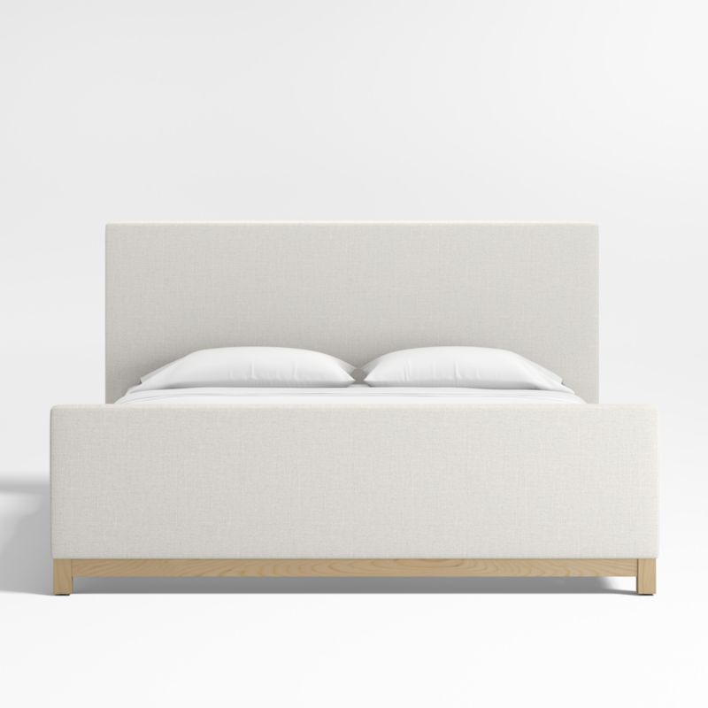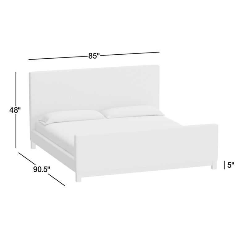Our best-selling Pacific sofa collection brings its easy, breezy style to the bedroom. The perfectly proportioned, clean-lined design brackets the bed with a slim, box-shaped head- and footboard and lines the sides with waterfall-wrapped rails. Wood legs and stretchers lend natural warmth while the recycled fabric in decor-friendly ivory delights with subtle texture and the color variation of marled yarn.