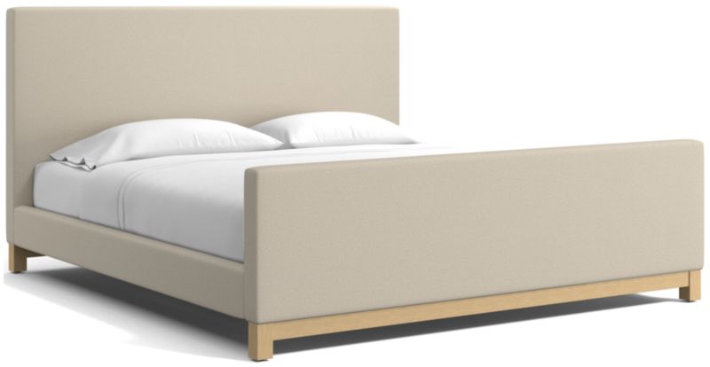 Our best-selling Pacific sofa collection brings its easy, breezy style to the bedroom. The perfectly proportioned, clean-lined design brackets the bed with a slim, box-shaped head- and footboard and lines the sides with waterfall-wrapped rails. Wood legs and stretchers lend natural warmth while the recycled fabric in decor-friendly ivory delights with subtle texture and the color variation of marled yarn.