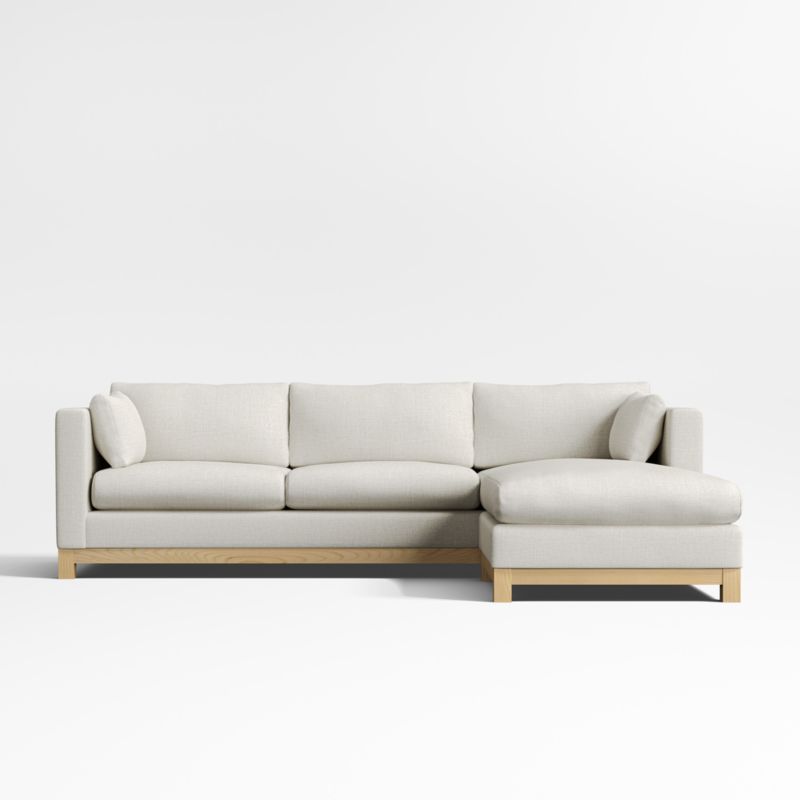 Long, low and made for lounging, the Pacific lounger complements contemporary living rooms with its easy, breezy style. Sustainably sourced wood with a light finish anchors the large sofa with square legs and a full rail. Along with pillowy back cushions and supportive bolsters, the bull-nosed seat ensures a comfortable stay with medium-density, not-too-deep cushions. The lounger's reversible design lets you move the ottoman topped with a chaise-style cushion from either side of the large, roomy sofa to create the look of a right- or left-arm sectional. A Crate & Barrel exclusive, the Pacific reversible lounger sits soft but not too deep, making it ideal for small-space living.