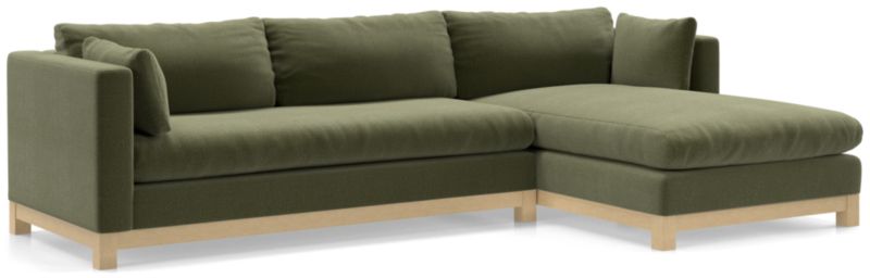 Long, low and made for lounging, our Pacific sectional sofa complements contemporary living rooms with its easy, breezy style. Sustainably sourced wood with a light finish anchors the combination of left-arm bench sofa and right-arm chaise with square legs and a full rail. Along with pillowy back cushions and supportive bolsters, the bull-nosed seats ensure a comfortable stay with medium-density, not-too-deep cushions. You'll love it upholstered in Olef, a 100% recycled fabric with subtle textured slub and marled yarns.