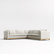 Long, low and made for lounging, our Pacific sectional complements contemporary living rooms with its easy, breezy style. Sustainably sourced wood with a light finish anchors the combination of a left-arm chaise and right-arm sofa with square legs and a full rail. Along with pillowy back cushions and supportive bolsters, the bull-nosed seat ensures a comfortable stay with medium-density, not-too-deep cushions. You'll love the sectional sofa upholstered in Olef, a 100% recycled fabric with subtle textured slub and marled yarns.