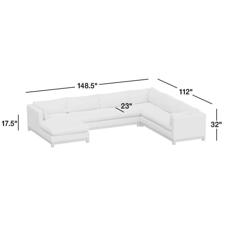 Long, low and made for lounging, our Pacific sectional sofa complements contemporary living rooms with its easy, breezy style. Sustainably sourced wood with a light finish anchors the four-piece sectional —right-arm bench sofa, corner, armless bench sofa and left-arm chaise—with square legs and a full rail. Along with pillowy back cushions and supportive bolsters, the bull-nosed seats ensure a comfortable stay with medium-density, not-too-deep cushions. You'll love it upholstered in Olef, a 100% recycled fabric with subtle textured slub and marled yarns.