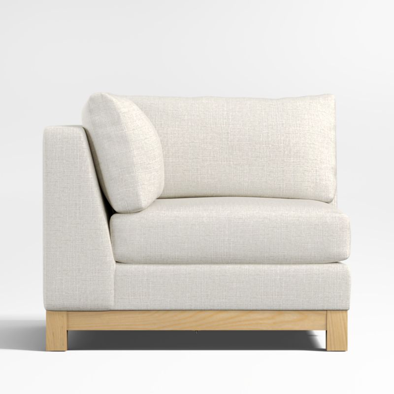 Long, low and made for lounging, our Pacific sectional collection complements contemporary living rooms with its easy, breezy style. Sustainably sourced wood with a light finish anchors the corner chair with square legs and a full rail. Along with pillowy back cushions, the bull-nosed seat ensures a comfortable stay with a medium-density, not-too-deep cushion. Combine with other pieces to configure a sectional sofa that's just right for your space. You'll love it upholstered in Olef, a 100% recycled fabric with subtle textured slub and marled yarns.