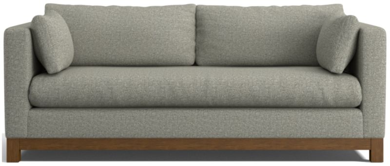 Long, low and made for lounging, the Pacific sofa complements contemporary living rooms with its easy, breezy style. Sustainably sourced wood with a light finish anchors the bench sofa with square legs and a full rail. Along with pillowy back cushions and supportive bolsters, the bull-nosed seat ensures a comfortable stay with a medium-density, not-too-deep cushion. You'll love it upholstered in Olef, a 100% recycled fabric with subtle textured slub and marled yarns.