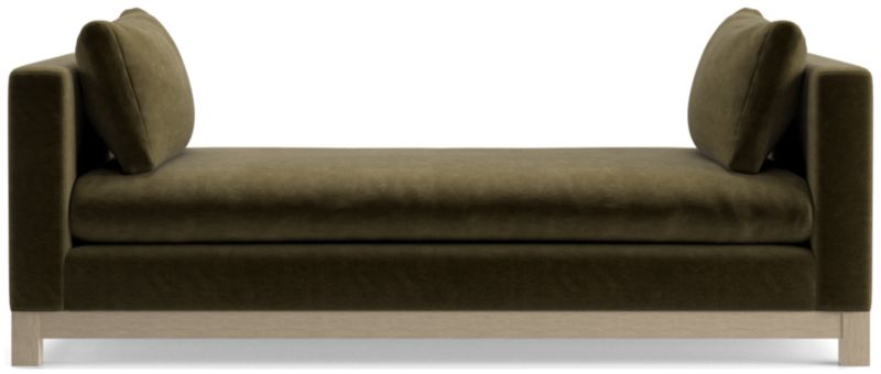 Long, low and made for lounging, our Pacific daybed complements contemporary living rooms with its easy, breezy style. Sustainably sourced wood with a light finish anchors the bench-like sofa with square legs and a full rail. Along with supportive bolsters, the bull-nosed seat ensures a comfortable stay with a medium-density, not-too-deep cushion. Let it float in the room or move the daybed up against the wall with bolsters arranged like a sofa. You'll love it upholstered in Olef, a 100% recycled fabric with subtle textured slub and marled yarns.