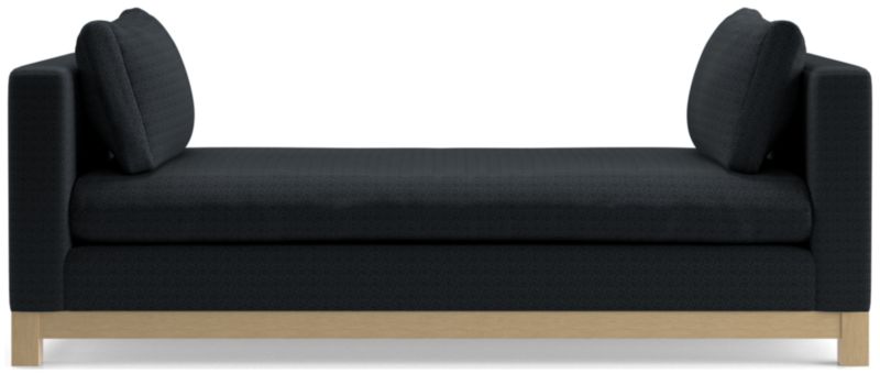 Long, low and made for lounging, our Pacific daybed complements contemporary living rooms with its easy, breezy style. Sustainably sourced wood with a light finish anchors the bench-like sofa with square legs and a full rail. Along with supportive bolsters, the bull-nosed seat ensures a comfortable stay with a medium-density, not-too-deep cushion. Let it float in the room or move the daybed up against the wall with bolsters arranged like a sofa. You'll love it upholstered in Olef, a 100% recycled fabric with subtle textured slub and marled yarns.