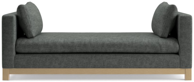 Long, low and made for lounging, our Pacific daybed complements contemporary living rooms with its easy, breezy style. Sustainably sourced wood with a light finish anchors the bench-like sofa with square legs and a full rail. Along with supportive bolsters, the bull-nosed seat ensures a comfortable stay with a medium-density, not-too-deep cushion. Let it float in the room or move the daybed up against the wall with bolsters arranged like a sofa. You'll love it upholstered in Olef, a 100% recycled fabric with subtle textured slub and marled yarns.