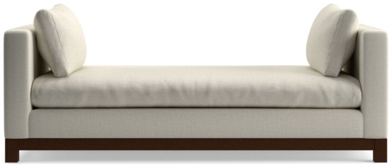 Long, low and made for lounging, our Pacific daybed complements contemporary living rooms with its easy, breezy style. Sustainably sourced wood with a light finish anchors the bench-like sofa with square legs and a full rail. Along with supportive bolsters, the bull-nosed seat ensures a comfortable stay with a medium-density, not-too-deep cushion. Let it float in the room or move the daybed up against the wall with bolsters arranged like a sofa. You'll love it upholstered in Olef, a 100% recycled fabric with subtle textured slub and marled yarns.