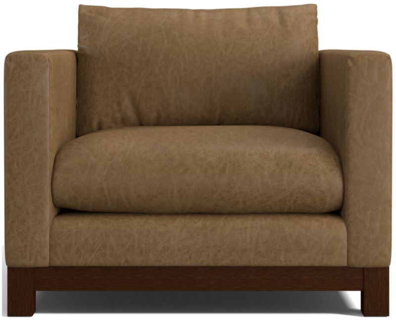 Made for lounging, our Pacific chair complements contemporary living rooms with its easy, breezy style and the luxury of full-grain leather. Sustainably sourced wood with a light finish anchors the accent chair with square legs and a full rail. Along with a pillowy back cushion, the bull-nosed seat ensures a relaxing stay with a medium-density, not-too-deep cushion. Rich and rustic leather upholstery takes Pacific to the next level of indulgence, offering a velvety hand, burnished appearance and beautiful patina over time.