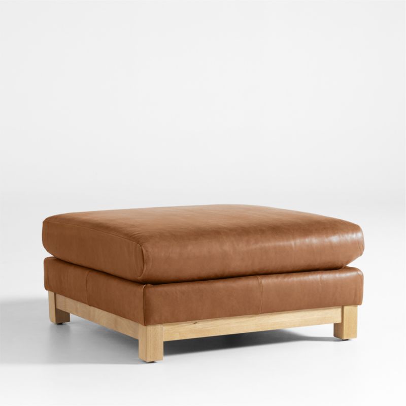 Our Pacific ottoman complements contemporary living rooms with its easy, breezy style and the luxury of full-grain leather. Sustainably sourced wood with a light finish anchors the ottoman with square legs and a full rail. The bull-nosed seat with a medium-density cushion makes for a relaxing footrest or extra perch. Rich and rustic leather upholstery takes Pacific to the next level of indulgence, offering a velvety hand, burnished appearance and beautiful patina over time.