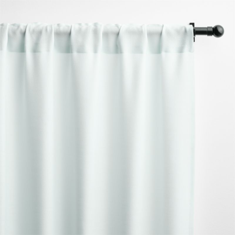 This wool curtain panel has a soft, supple feel and elegant drape. The pale blue curtain has a matte finish that softly filters light. Made of durable wool, the panel complements windows with a cozy-yet-refined look.