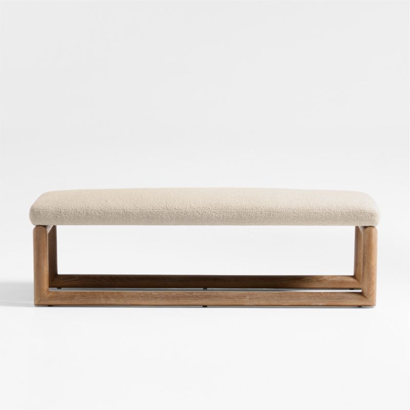 This bench combines the same mix of materials and rounded contours as our Palermo bed. The plush, cushioned seat is upholstered in an oatmeal fabric with a cozy, fleecy hand. Oak fashions the rounded, open frame, finished with a brown stain and ivory cerusing to highlight the beautiful wood grain.