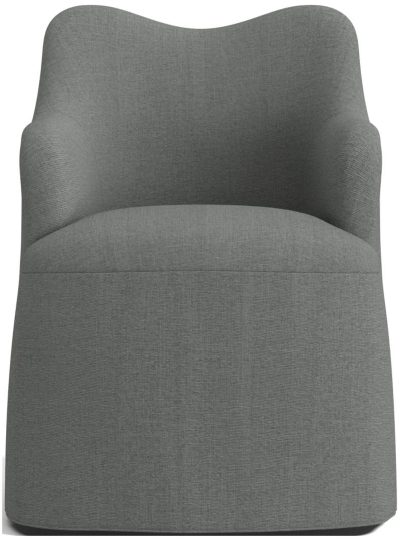 Channeling the rounded contours and relaxation of a living room armchair, our Paloma dining chair serves up fresh wingback curves along with table-lingering comfort. Tight tailoring of the upholstery highlights the sculptural form while keeping the look neat and refined. We love the subtle sense of movement and casual slipcover flair that the skirted seat lends to the chair's relaxed elegance. And Paloma swivels a full 360 degrees, letting you easily follow tableside conversation and take a sweeping view of the dining room.