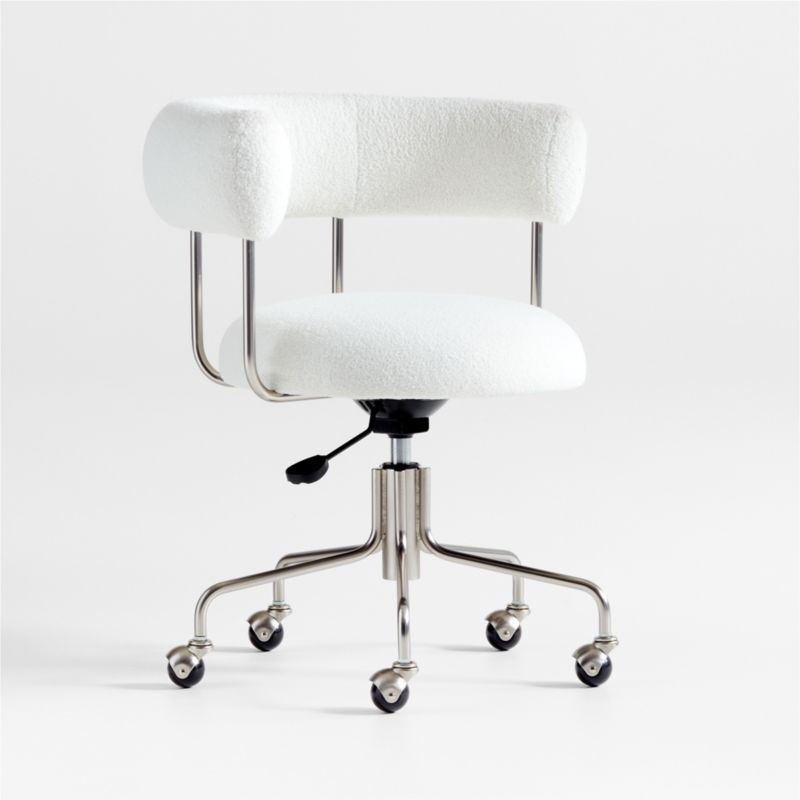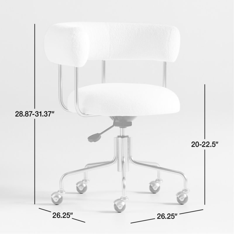 Inspired by Swiss and French architects and designers in the 1920s, our Perri office chair brings modernist style to the home office. An expression of pure geometry with the concentric curves of its seat and armrest, Perri updates a classic with irresistibly soft faux shearling. We love the ultra-soft performance fabric in snow white juxtaposed with the gleaming pewter frame and base. The full 360-degree swivel, adjustable height and durable casters ensure the Perri shearling office chair accommodates the needs of the modern workday.