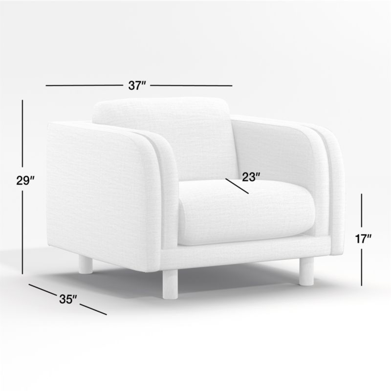 Art Deco curves meet 1970s lounge in our utterly contemporary Pershing collection. Slim rails and arched armrests take a low profile to make room for the chair's generous seat and back cushions filled with a comfy mix of foam and fiber. Round sturdy legs add bold detail, while the tweedy, linen-like fabric layers on texture. Our exclusive Pershing collection offers a lot of chair and style with a small footprint, making it a clear choice for small spaces.