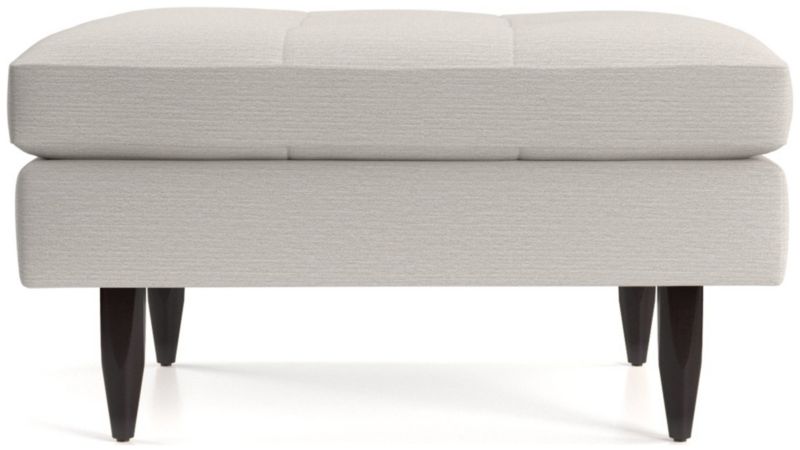 Now a Crate and Barrel classic, its pure 1960s aesthetic looks sharp with sleek, boxy cushions and slim track arms upholsterd in menswear-inspired fabric with heathered color and soft texture. Petrie Midcentury Ottoman is a Crate and Barrel exclusive.