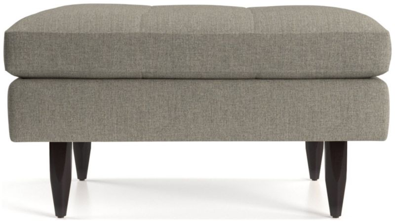 Now a Crate and Barrel classic, its pure 1960s aesthetic looks sharp with sleek, boxy cushions and slim track arms upholsterd in menswear-inspired fabric with heathered color and soft texture. Petrie Midcentury Ottoman is a Crate and Barrel exclusive.
