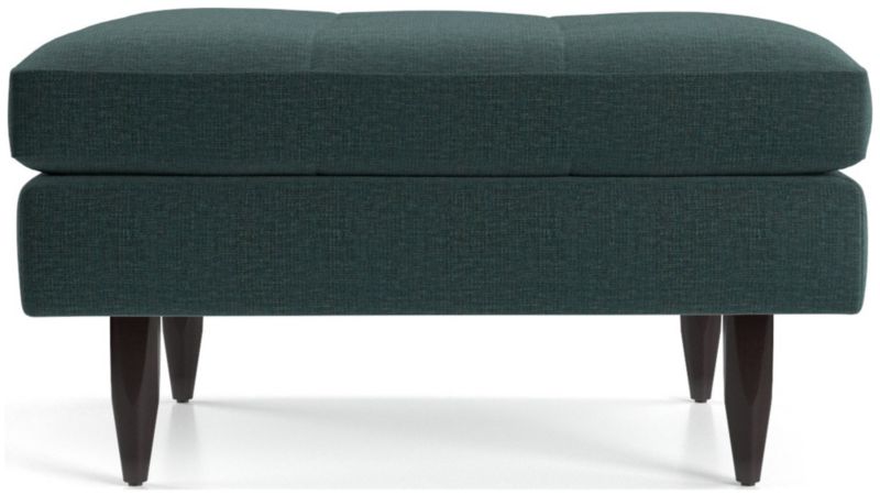 Now a Crate and Barrel classic, its pure 1960s aesthetic looks sharp with sleek, boxy cushions and slim track arms upholsterd in menswear-inspired fabric with heathered color and soft texture. Petrie Midcentury Ottoman is a Crate and Barrel exclusive.