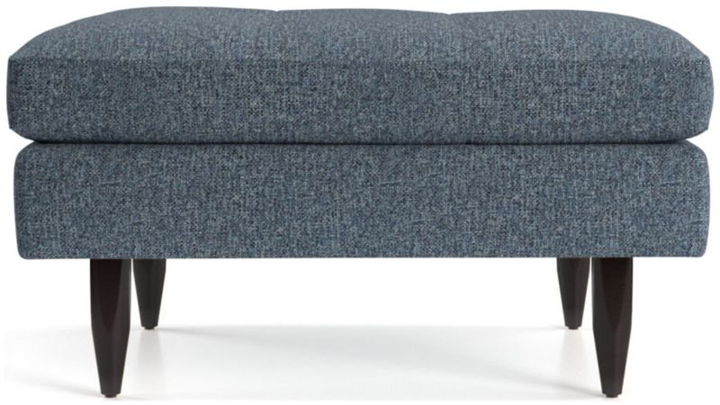 Now a Crate and Barrel classic, its pure 1960s aesthetic looks sharp with sleek, boxy cushions and slim track arms upholsterd in menswear-inspired fabric with heathered color and soft texture. Petrie Midcentury Ottoman is a Crate and Barrel exclusive.