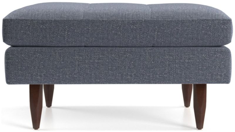 Now a Crate and Barrel classic, its pure 1960s aesthetic looks sharp with sleek, boxy cushions and slim track arms upholsterd in menswear-inspired fabric with heathered color and soft texture. Petrie Midcentury Ottoman is a Crate and Barrel exclusive.