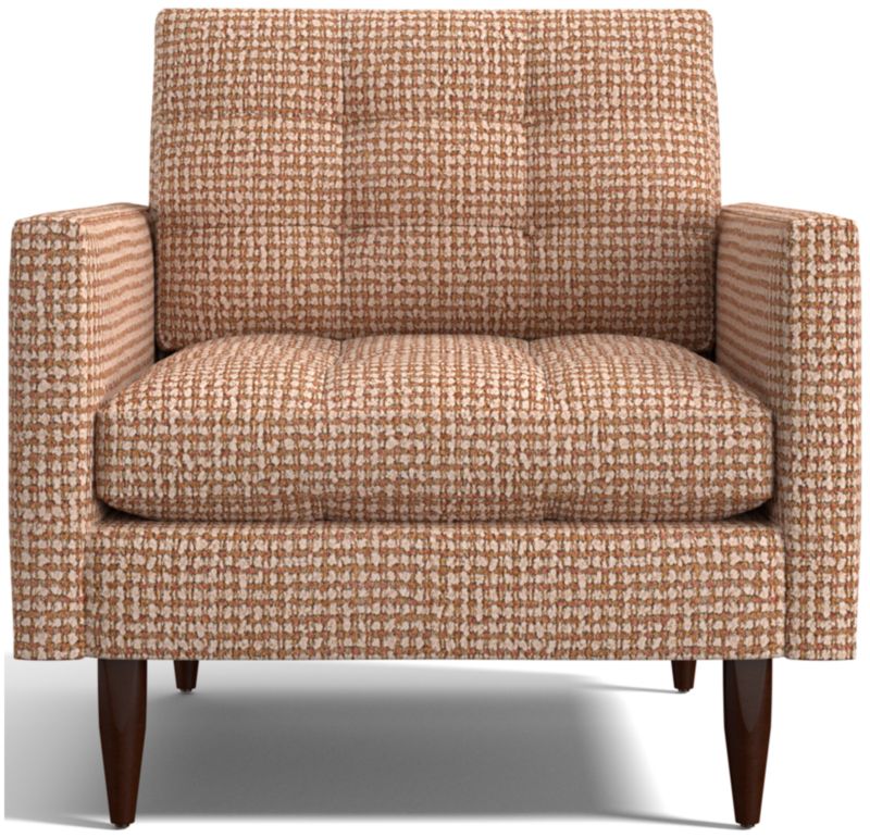 Petrie is a distinct living room chair that sits at the intersection of mid-century and today, with clean lines and tailored cushions expertly button-tufted by hand.