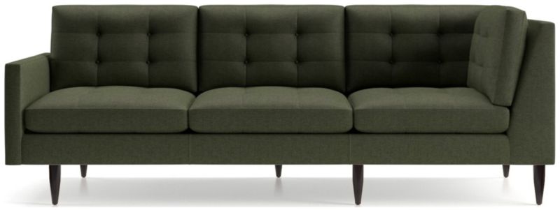 Now a Crate and Barrel classic, its pure 1960s aesthetic is scaled deep so you can sit firm and upright, but also slouch back in comfort. Well-suited to make a great impression, the menswear-inspired fabric tailors Petrie's sleek, boxy cushions and slim track arms with heathered color and soft texture. Easily create a custom sectional for your unique space by joining the left arm corner sofa with companion pieces from the Petrie Sectional Collection. The Petrie Midcentury Left Arm Corner Sofa is a Crate and Barrel exclusive.