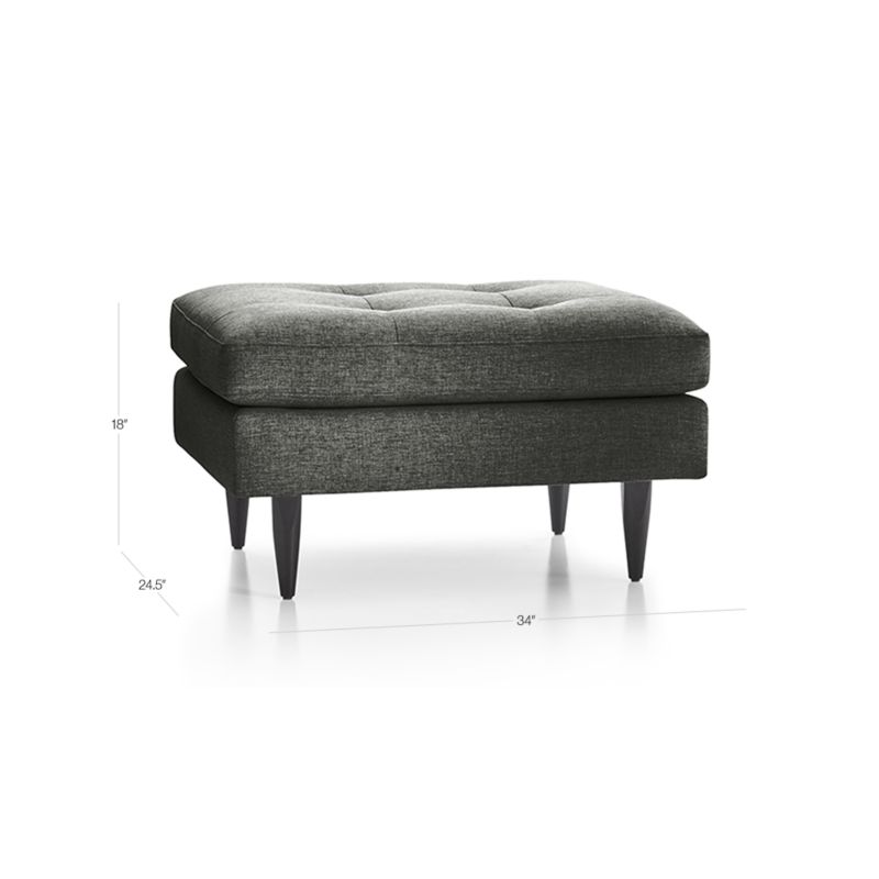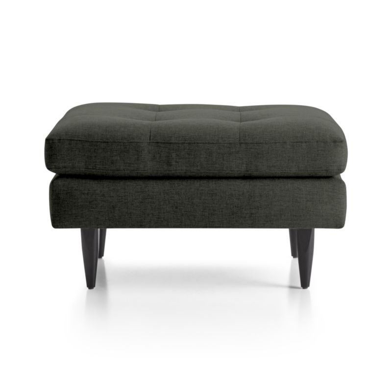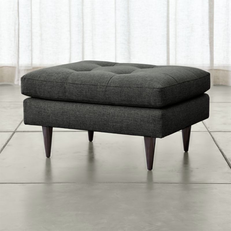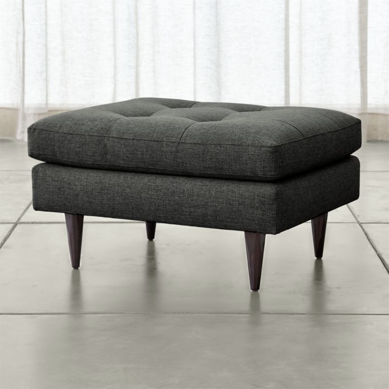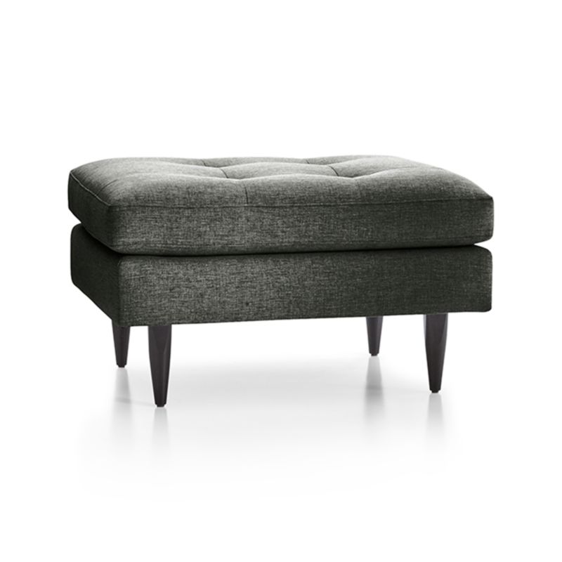 Now a Crate and Barrel classic, its pure 1960s aesthetic looks sharp with sleek, boxy cushions and slim track arms upholsterd in menswear-inspired fabric with heathered color and soft texture. Petrie Midcentury Ottoman is a Crate and Barrel exclusive.