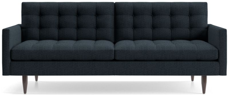 Now a Crate and Barrel classic, its pure 1960s aesthetic is scaled deep so you can sit firm and upright, but also slouch back in comfort. Well-suited to make a great impression, the menswear-inspired fabric tailors Petrie's sleek, boxy cushions and slim track arms with heathered color and soft texture. The Petrie Midcentury Sofa is a Crate and Barrel exclusive.