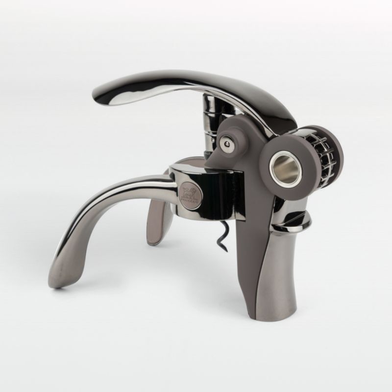 Extract any cork smoothly and quickly with this elegantly engineered corkscrew. Crafted of solid metal, the sturdy tool utilizes a lever-style mechanism to remove corks with ease. Soft rubber grips offer a comfortable handhold, while the accompanying foil cutter eliminates mess and frustration. Finished in matte and glossy warm hues inspired by basalt, the Baltaz manual corkscrew looks at home on casual and formal dining tables.