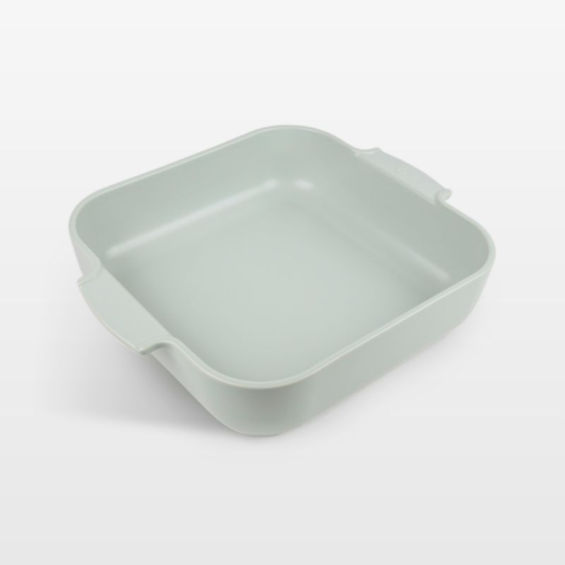 Glazed a fresh shade of green inspired by sage, this refined baker goes from freezer to oven to table to dishwasher for effortless entertaining. The square ceramic dish bakes evenly and keeps your creations warm for up to 30 minutes after you pull them from the oven. Rounded corners and an enamel glaze ensure easy serving and cleanup. Crafted with high sides and easy-grip handles, the creamy green baking dish makes a beautiful presentation of enchiladas, spinach-potato casserole or bar cookies.