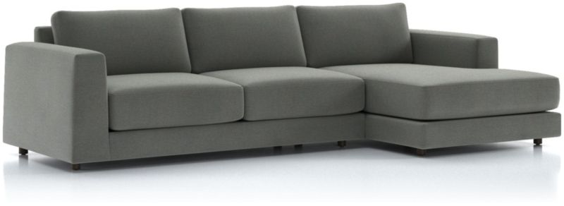 Our Peyton sectional is crafted with comfort and quality in mind. Designed for the modern family, the two-piece sectional features generous, settle-in cushions nestled between wide taper arms. Beautifully upholstered to bring out Peyton's modern, straightforward lines, the right-arm chaise and left-arm sofa promise a comfy stay thanks to supportive innerspring suspension. The Peyton 2-Piece Right Arm Chaise Sectional is a Crate and Barrel exclusive.