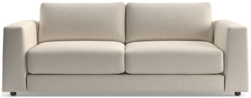 Peyton is crafted with comfort and quality in mind. Designed for the modern family, the sofa features generous, settle-in cushions nestled between wide taper arms. Beautifully upholstered to bring out Peyton's modern, straightforward lines, the wide arm sofa promises a comfy stay thanks to its supportive innerspring suspension. The Peyton Sofa is a Crate and Barrel exclusive.