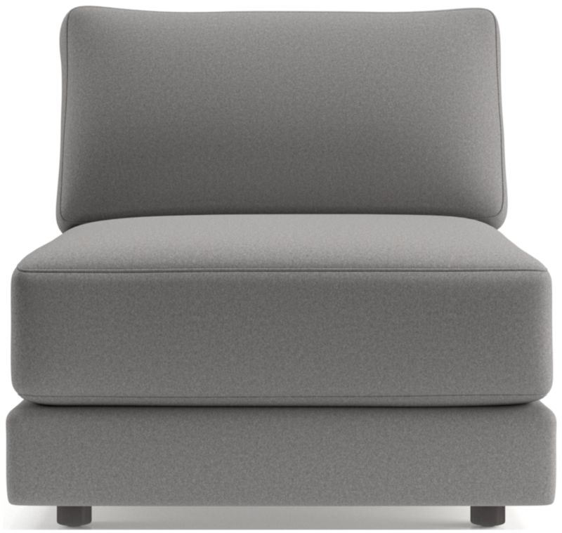 Our Peyton sectional is crafted with comfort and quality in mind. Designed for the modern family, each sectional piece features generous, settle-in cushions nestled between wide taper arms. Beautifully upholstered to bring out Peyton's modern, straightforward lines, the armless chair promises a comfy stay thanks to its supportive innerspring suspension. The Peyton Armless Chair is a Crate and Barrel exclusive.