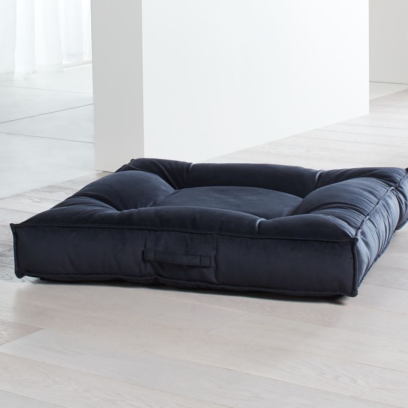 Finally a dog bed that you and your pet both will love. Inspired by the piazza, an open public space that's the center of many Italian towns, this tufted square mimics the sleek look of flat floor cushions with a luxurious velvet in decor-friendly dark grey. The extra-large dog bed pampers your pup with plush, overstuffed outer bolsters and a fiber-topped foam center cushion that provides superior loft, resilience and comfort. The microvelvet cover resists pilling, repels pet hair, dirt and moisture, and cleans up easily in the washing machine, looking brand new after each cleaning. Breathable construction remains cool in the summer and warm in the winter.
