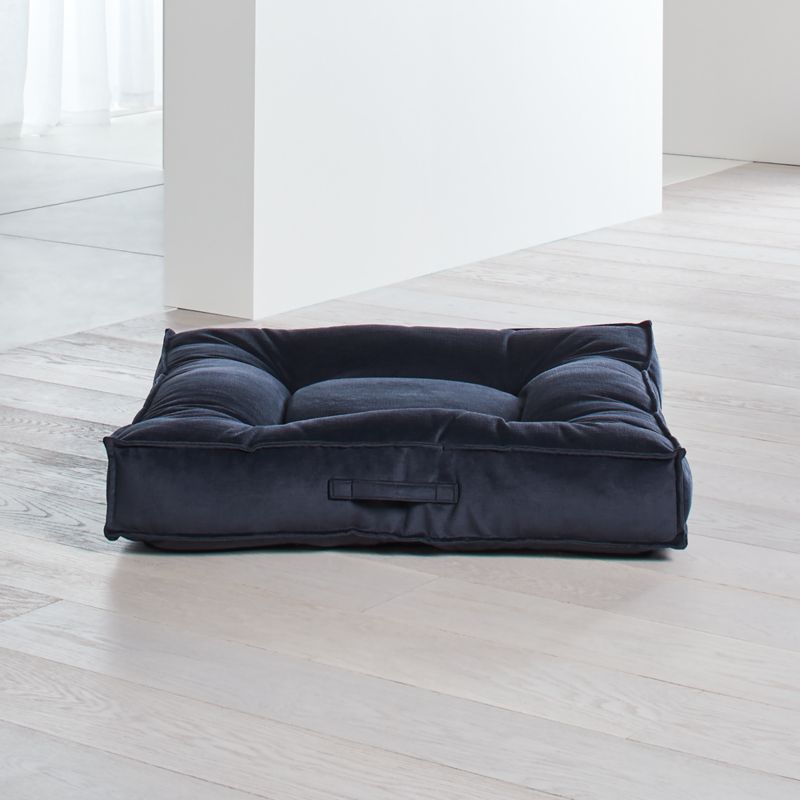 Finally a dog bed that you and your pet both will love. Inspired by the piazza, an open public space that's the center of many Italian towns, this tufted square mimics the sleek look of flat floor cushions covered in luxurious velvet in decor-friendly dark grey. The large dog bed pampers your pup with plush, overstuffed outer bolsters and a fiber-topped foam center cushion that provides superior loft, resilience and comfort. The microvelvet cover resists pilling, repels pet hair, dirt and moisture, and cleans up easily in the washing machine, looking brand new after each cleaning. Breathable construction remains cool in the summer and warm in the winter.