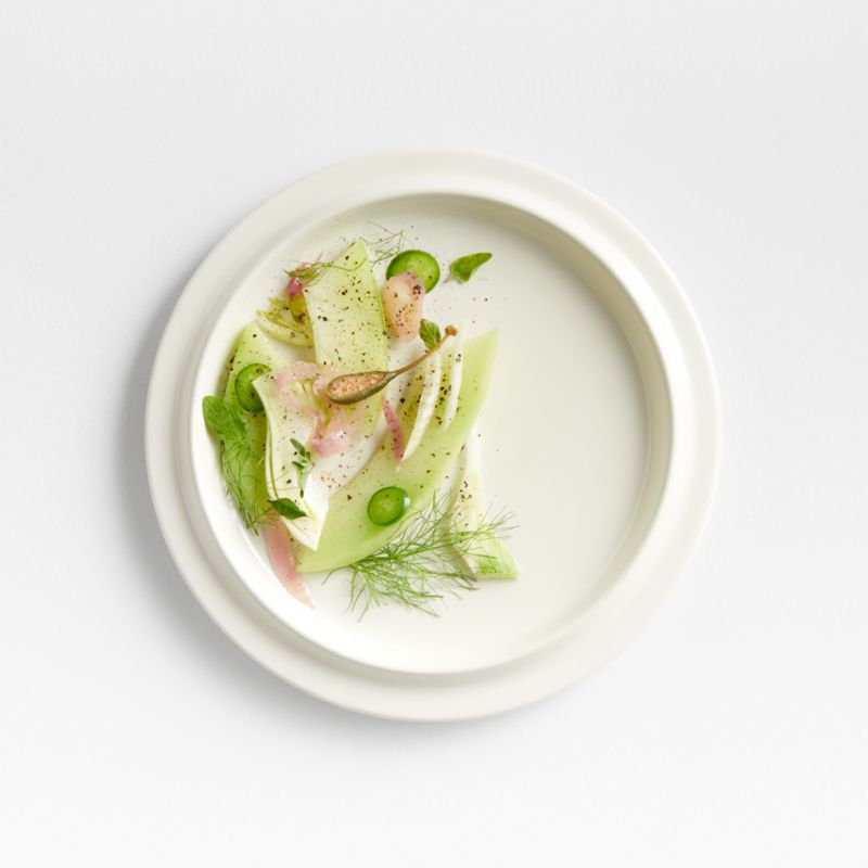 Service with style. Our Pile Parfaite salad plate serves breakfast pastries, desserts, composed salads and other small meals with effortless elegance. Athena Calderone designed the plates to look as beautiful stacked on a buffet or shelf as they are on the table. The artisanal plates's simple white glaze—applied by hand by talented artisans—keeps all the attention on the graceful silhouette, saucer-like rim and, of course, the food.