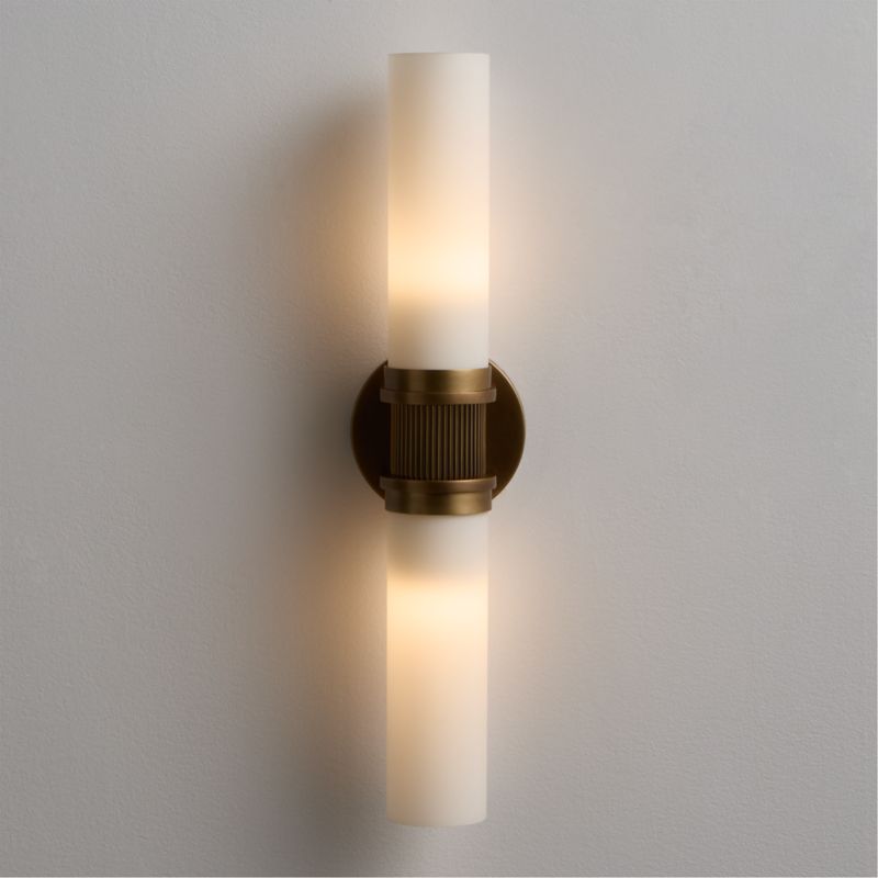 Inspired by Art Deco-era bistros, our Pisa sconces epitomize understated glamour. Exaggerated knurling transcends the industrial, becoming a graceful, rhythmic detail. Two milkglass shades on each sconce glow from within, casting flattering light. Designed to be oriented vertically or horizontally, the versatile wall lights shine above or flanking a work of art, bathroom vanity or bed.