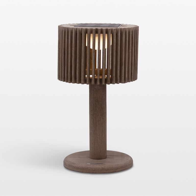 • Batten Brown Acacia Wood and Glass LED Solar Outdoor Lantern 13"