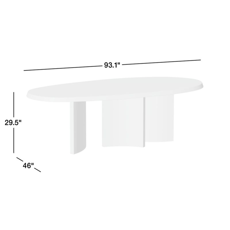 Asymmetry and organic curves bring offbeat style and a casual approach to dining. The mixed-material table features a thick top of natural oak, fashioned with a slight chamfered edge and given a light whitewashed stain to call forth the beautiful grain. Curved rectangles positioned at different angles serve as legs, made of faux travertine with all the textural intrigue and tonal color of natural stone. Paired with your choice of dining chairs, the statement-making table comfortably seats eight.