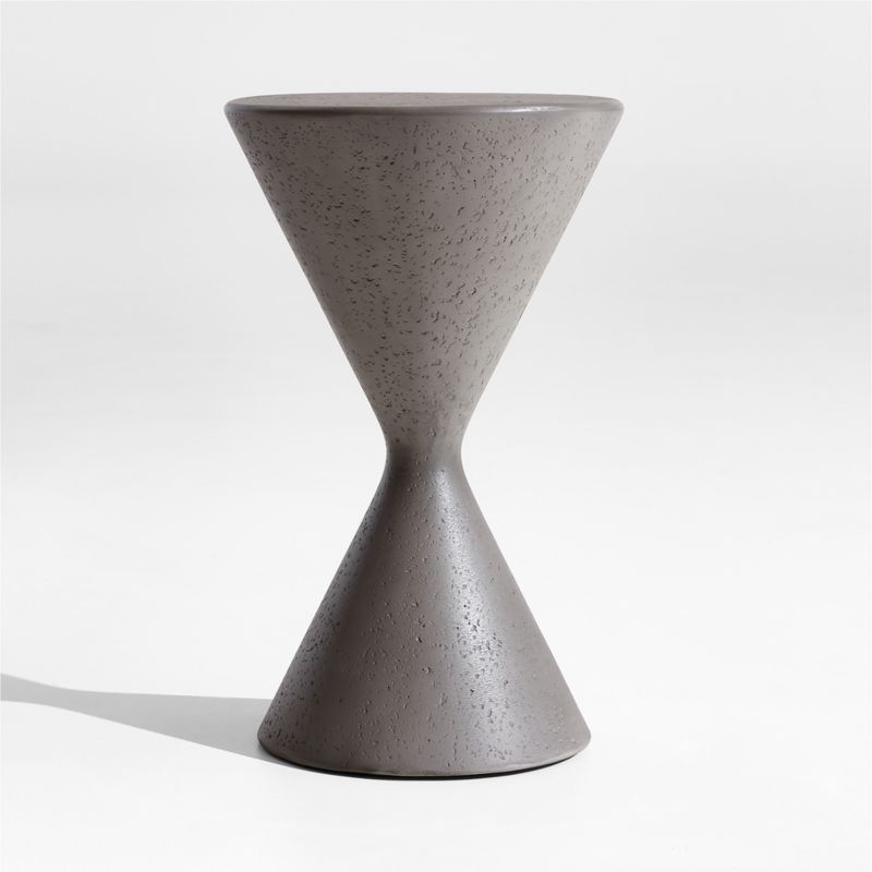 Inspired by mid-century design and the sophisticated style of destination resorts, our Posada side table graces spaces with its captivating silhouette. The table shapes a mix of cement and fiberglass into a sharply angled hourglass, emulating the look of hand-cast concrete with pitting and a patina-like grey finish. A natural and durable addition to furniture arrangements, the striking coffee table is also perfectly at home in a modern living room or outdoor space.