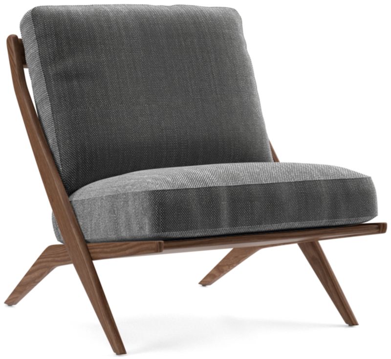 The classic slipper chair takes on mid-century vibes in our Pose chair. The solid ash frame tilts back with cantilever angles for a comfortable recline, showcasing the wood's beautiful grain and natural color. Clean-lined seat and back box cushions offer just the right mix of fiber and down for a comfortable yet supportive sit, while the linen-like upholstery layers on soft, touchable texture. The Pose natural accent chair is a Crate & Barrel exclusive.
