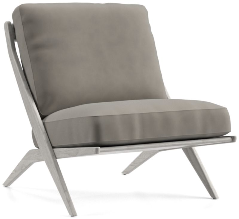 The classic slipper chair takes on mid-century vibes in our Pose chair. The solid ash frame tilts back with cantilever angles for a comfortable recline, showcasing the wood's beautiful grain and natural color. Clean-lined seat and back box cushions offer just the right mix of fiber and down for a comfortable yet supportive sit, while the linen-like upholstery layers on soft, touchable texture. The Pose natural accent chair is a Crate & Barrel exclusive.